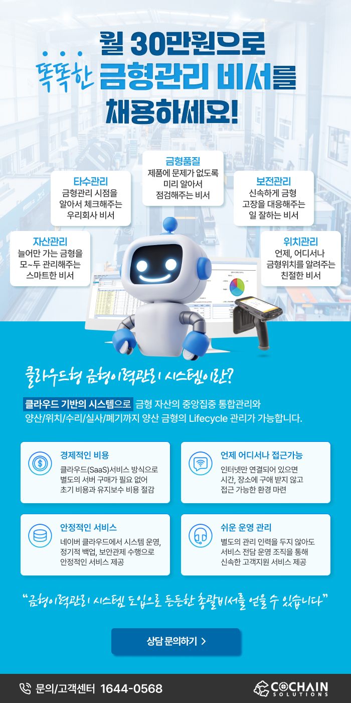 월30만원으로 똑똑한 금형관리 비서를 채용하세요!